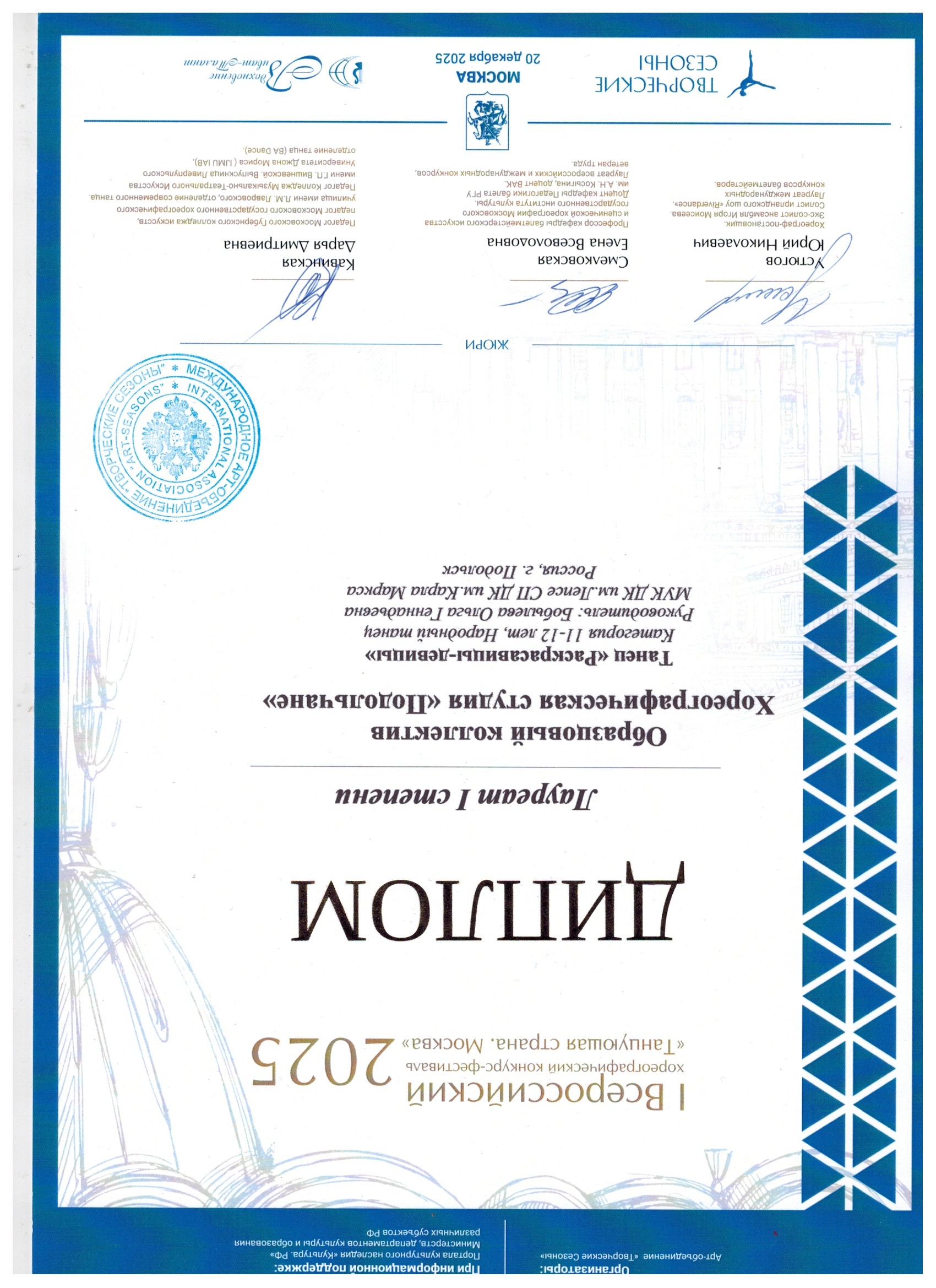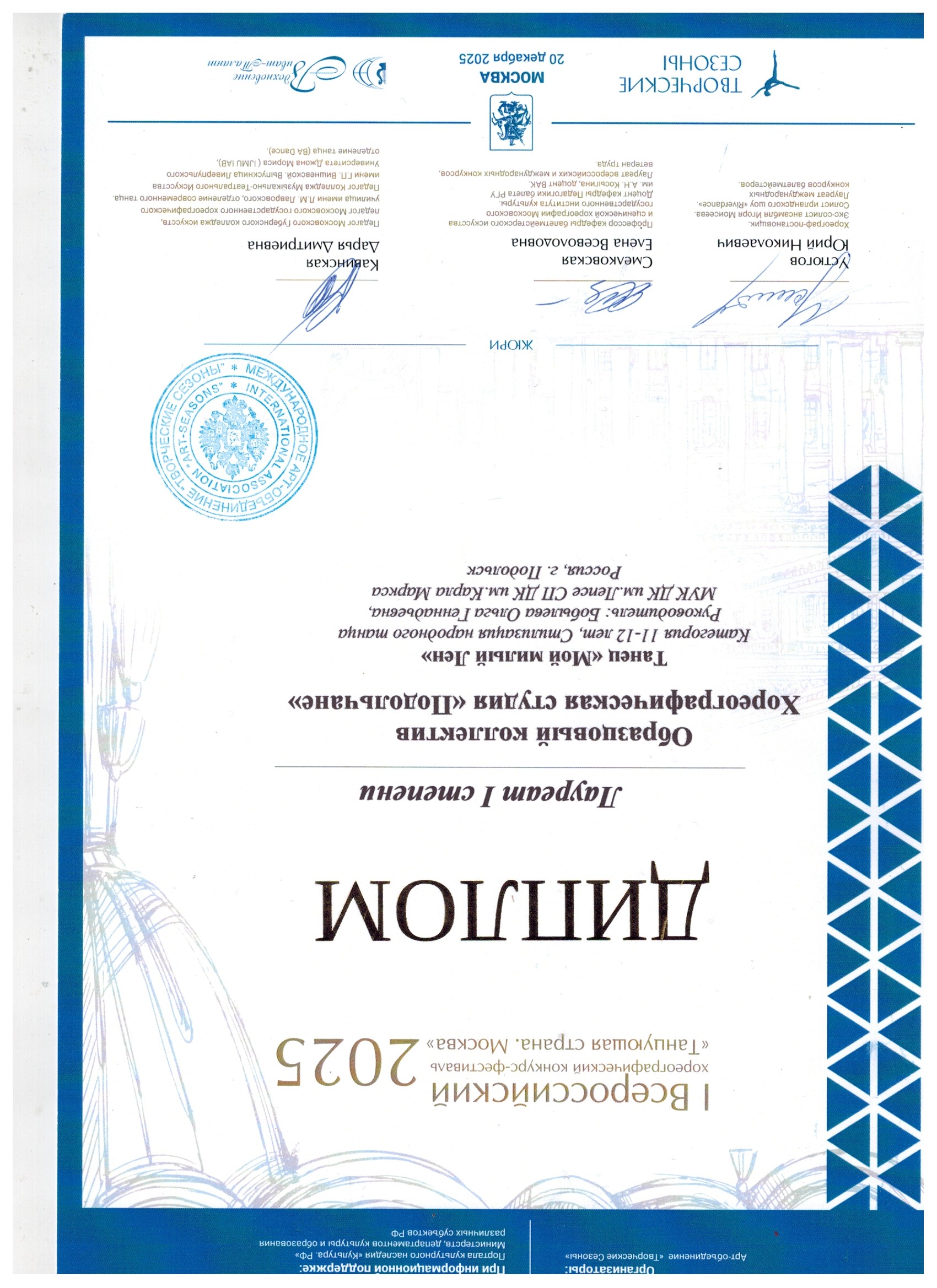 Итог выступления - блестящая победа. ЧЕТЫРЕ высших звания — ЛАУРЕАТ I СТЕПЕНИ! И одно почётное звание — ЛАУРЕАТ II СТЕПЕНИ!
