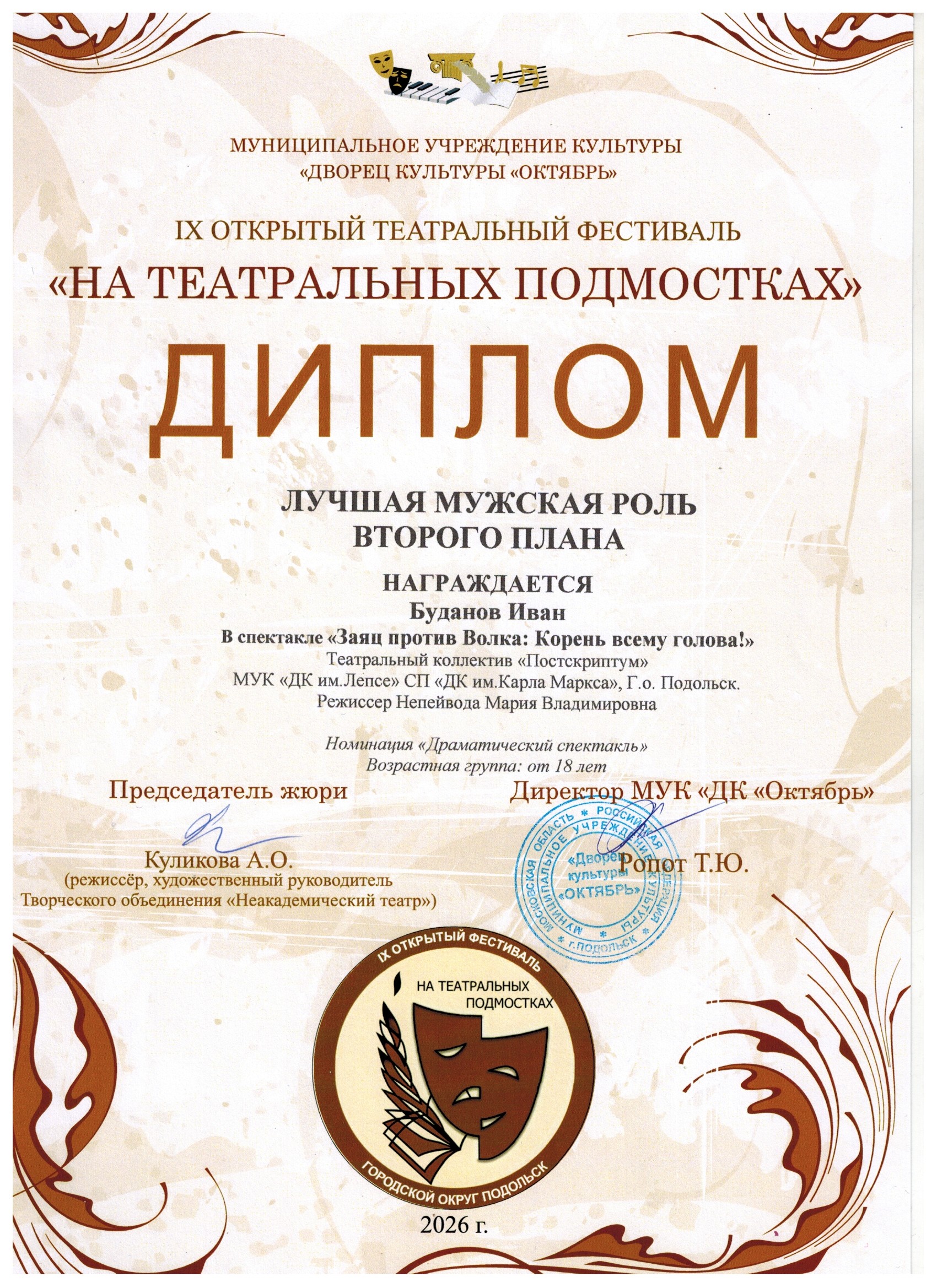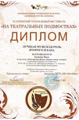 Буданов Иван — Диплом лучшая мужская роль второго плана.