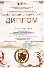 Спектакль «Привет, я Пеппи!» — Лауреат III степени.