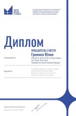 Гринина Юлия заняла 2 место (в возрастной группе 12-14 лет)