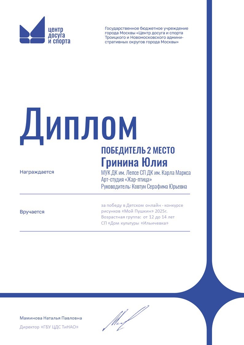 Участники Арт-студии "Жар-птица": Гринина Юлия и Иванова Александра стали победителями конкурса "Мой Пушкин", приуроченному ко дню памяти великого поэта Александра Сергеевича Пушкина!