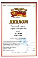 Лауреат III степени: Светлана Зыкова (возрастная группа 10-13 лет).